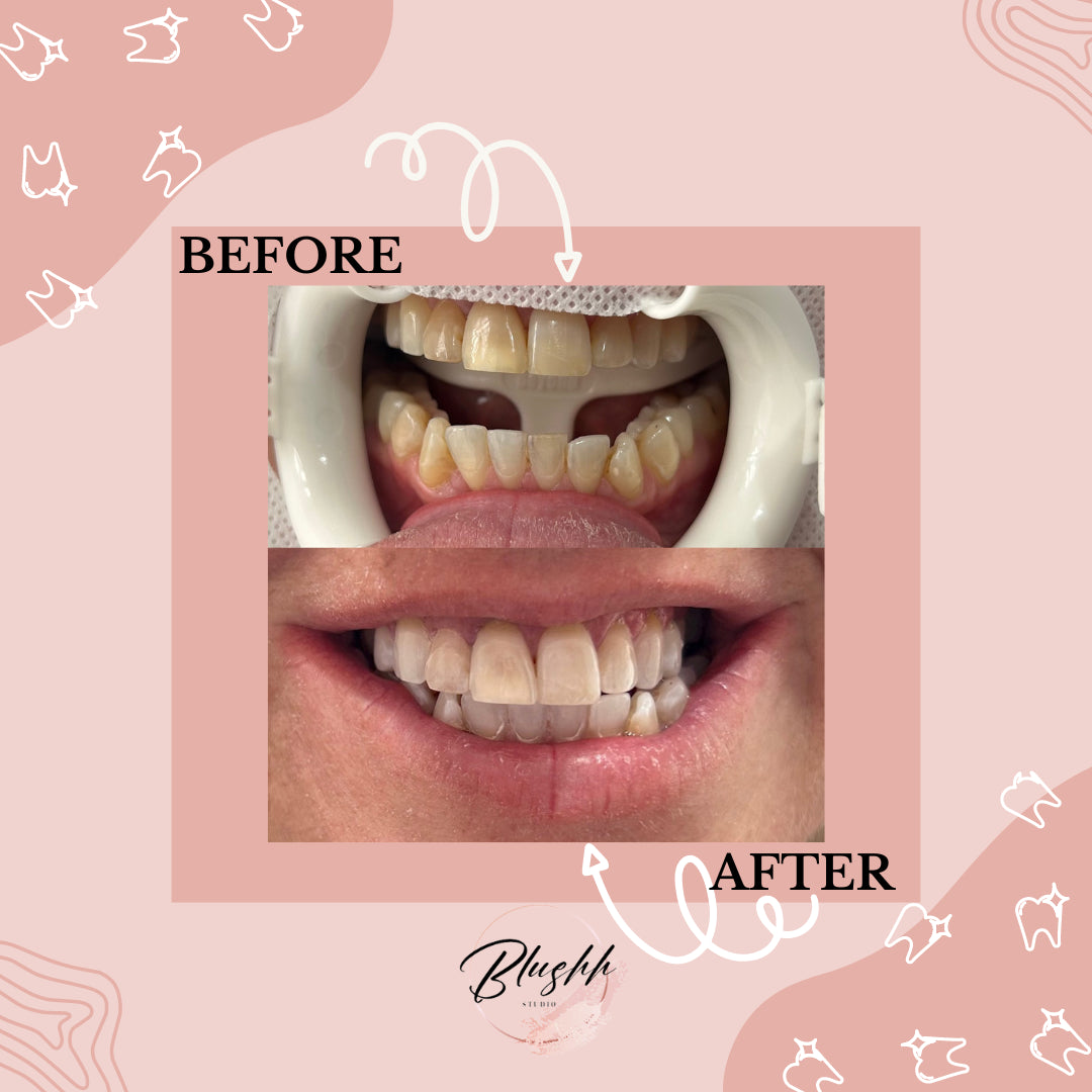 Using our Dental Grade Teeth Whitening System and Whitening gels we can achieve 3+ shades whiter in just one session!!